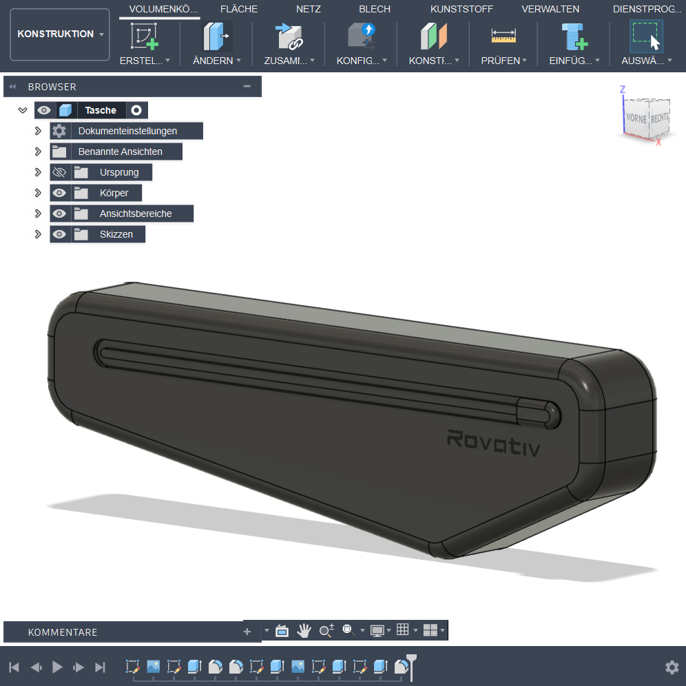 Wir entwickeln unsere Taschen so, wie wir selbst kaufen würden: durchdacht, langlebig und praxisorientiert. Der Startpunkt ist meist 3D-CAD – dort planen wir Form, Volumen und Befestigungspunkte. Danach kommt immer der Teil, der wirklich zählt: Praxistests. Wir fahren selbst, beladen voll, testen bei unterschiedlichem Wetter und auf verschiedenen Strecken. Was unterwegs nicht überzeugt, wird überarbeitet oder verworfen – bis es am Rad sauber funktioniert.